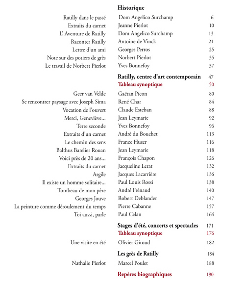 Ce livre de 200 pages célèbre plus de cinquante ans d’ouverture publique et d’animation culturelle variée. Il rend compte d’une aventure unique au cœur d’un site d’exception. Composé essentiellement des textes originaux qui ont accompagné les catalogues des expositions les plus emblématiques et le concours d’amis poètes, il est illustré de plus de 270 photos en couleur et en noir et blanc. Différents tableaux synoptiques traduisent de manière exhaustive l’ensemble des manifestations depuis les années 1950.