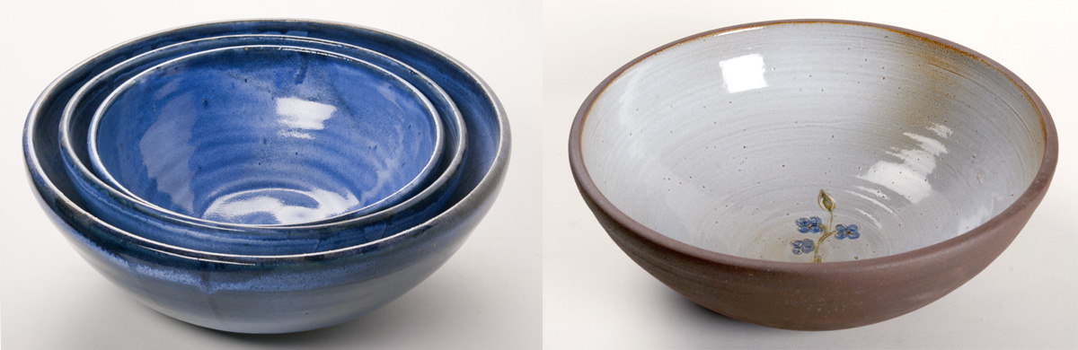 Coupes à dessert bleues N°1-3 + Coupe à dessert avec fleur