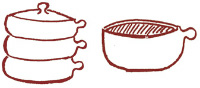 pour cuire à la vapeur, dans une casserole ou un faitout ordinaire, bien couverts, tous